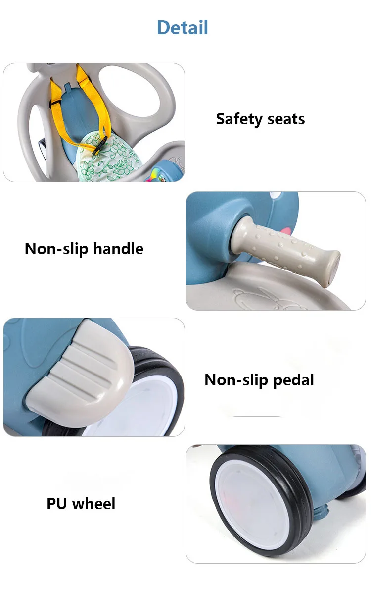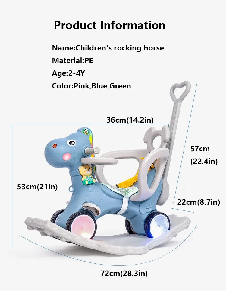 Name:Children’s rocking horse Material:PE Age:2-4Y Color:Pink,Blue,Green