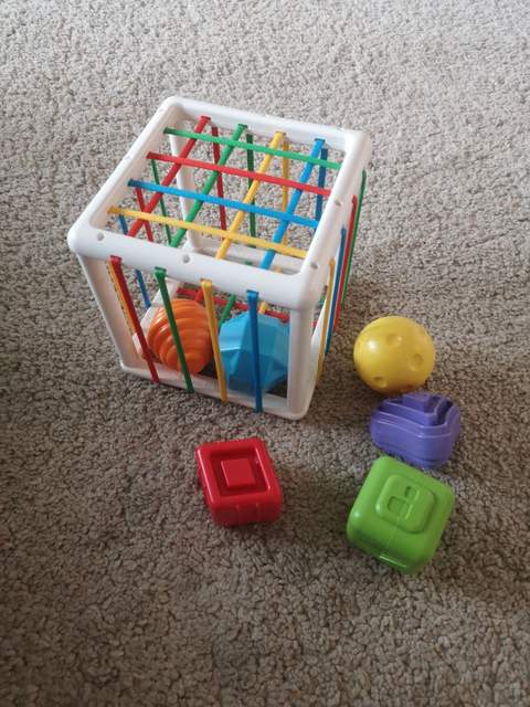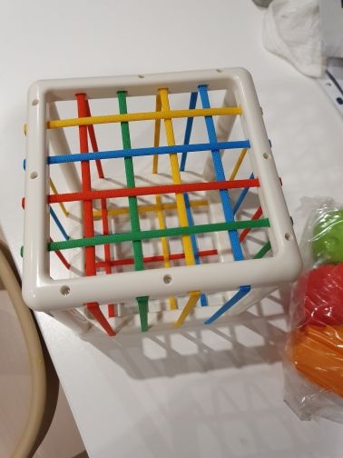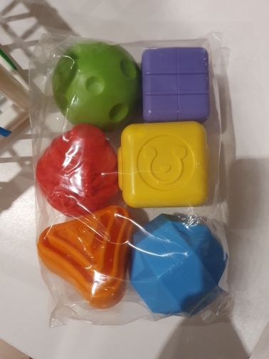 Wszystko w porządku. Przyszło bez opakowania kartonowego. Ale jest jak oryginal. Dobrze zapakowane, nieuszkodzone, 6 kształtów z grzechotką w środku. Szybka wysyłka. Jest zadowolona. Polecam