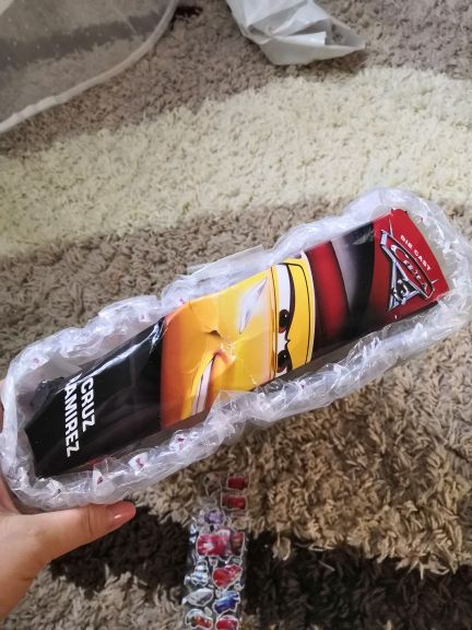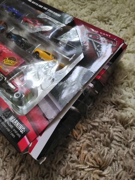 Продавец постарался хорошо упаковать коробку, но она всё равно пришла раздолбаной. Меня это не сильно расстроило. Машинки хорошие. Продавец положил наклейки в подарок, спасибо)
