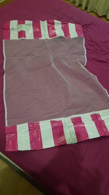 Sent Not immediately, but arrived quickly. The packaging is so-so, but it seems to have sustained, the contents are not damaged. The hammocks themselves unpacked, inflated, everything is OK. But the pink hammock was dirty with something sticky, did not rub it until neither alcohol nor soap. It is on one side badly glued, it will have to collective farm independently, or the grid will quickly break.