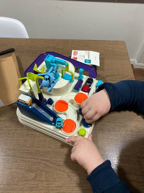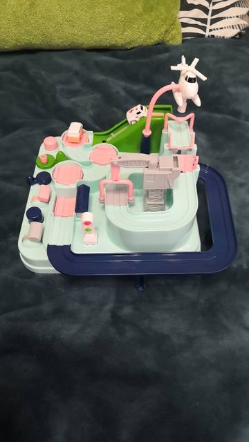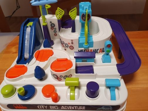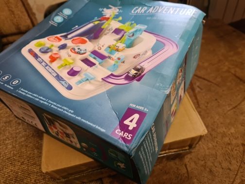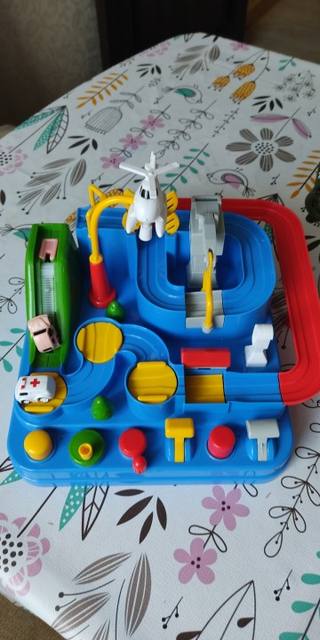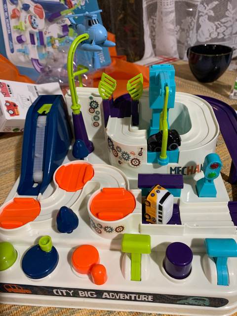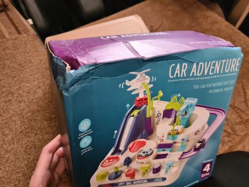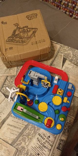 The toy is super, I played with my husband for half an hour. Slightly disappointed with the size of the machines, 3 cm, but on the functional of the track it did not affect. The box was all crumpled, for a gift it will be necessary to look for another package