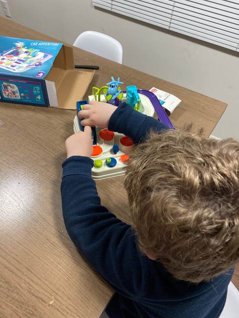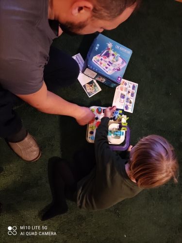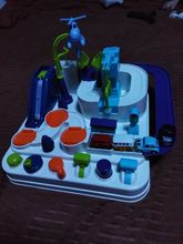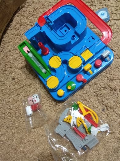 Хорошая игра. Всё работает отлично. Только нужно приноровиться цеплять машинку на магнит вертота. Детали трека выполнены из пластика, колёсики машинок - из металла. Всё яркое. Собирается быстро. Инструкция прилагается. Стоит своих денег. Прибыло раньше срока с другими посылками. Рекомендую к покупке.