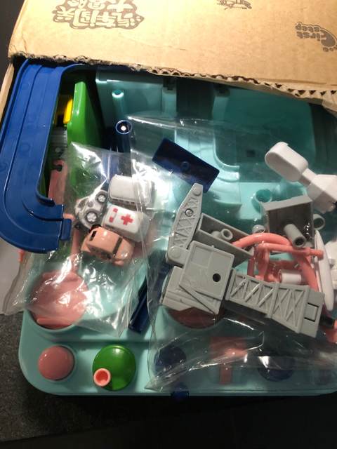 Delivery is more or less fast, as several goods went at once. Packed in a box. Nice toy. Everything's fine. Plastic smells nothing. Completely did not collect, as this is a gift for the child for the new year. But they checked all the levers and buttons-they work. The magnet from the helicopter sticks well to the machines. The bottom of the toy is really made of cardboard, but it does not affect. It's okay. Bought for 1178 rubles.