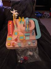 Arrive a faster then expected, but a little damage at the bottom of the toys as in picture. We are missing some pieces too.. hope to get a replacement.